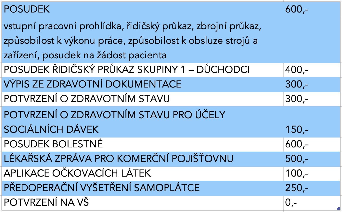 Jejich popis a ceník platný od 1. 1. 2026 naleznete zde.